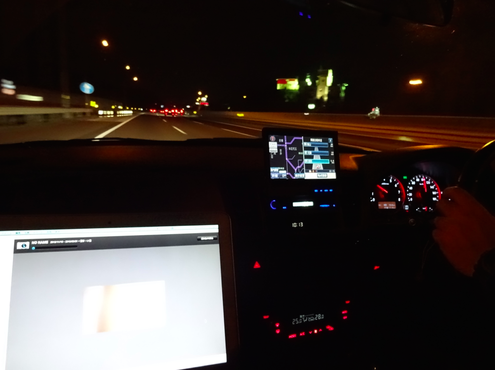 パソコン開いて、ケーブルつないだまま車に乗り込み、横瀬さんに運転してもらっちゃいました。
